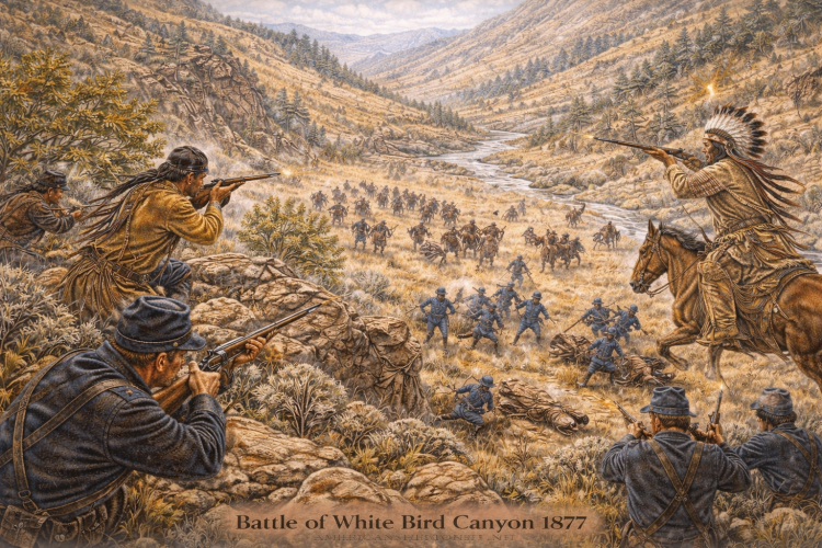 A portion of the U.S. army reached near the White Bird Canyon area by June 16. On the morning of June 17, both sides sent truce parties to conclude the conflict peacefully. But a civilian in the U.S. army’s truce party shot at the Indians and that immediately ended any hope for peaceful resolution. The opening shots were followed by the battle.