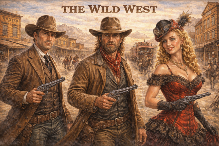 The western frontier became famous for opportunity, lawlessness, frontier justice, and the rise of legendary outlaws, settlers, and lawmen.