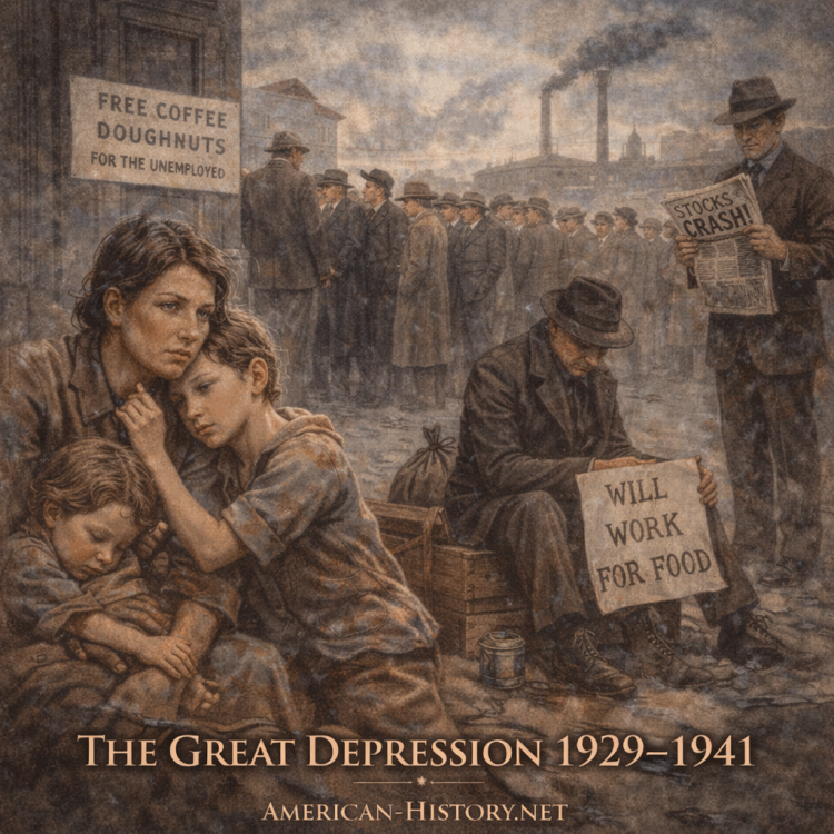 The Great Depression was a period of severe economic crisis in American history. It began in 1929 when the stock market crashed and continued until 1939. During this period, thousands of banks were closed, hundreds of thousands of people lost the ownership of their homes and millions had to migrate from their homes.
