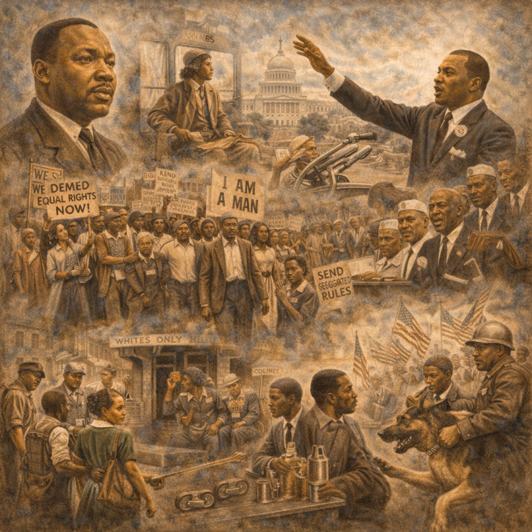 The Civil Rights Movement challenged segregation and discrimination through protest, legal action, and leadership—laying foundations for ongoing struggles over equality and justice.