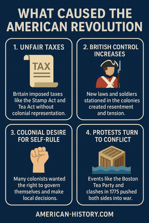 The American Revolution was the result of growing political, economic, and military tensions between Great Britain and its North American colonies. Rather than being sparked by a single incident, the revolution unfolded through a series of interconnected events that gradually pushed the colonies toward independence.