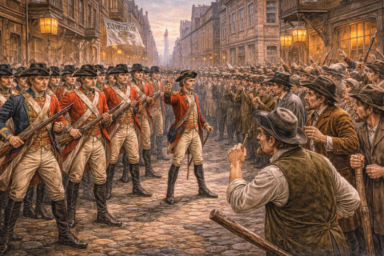 To enforce tax laws and maintain order, British troops were stationed in Boston. On March 5, 1770, tensions erupted when a confrontation between soldiers and civilians ended with five colonists dead.